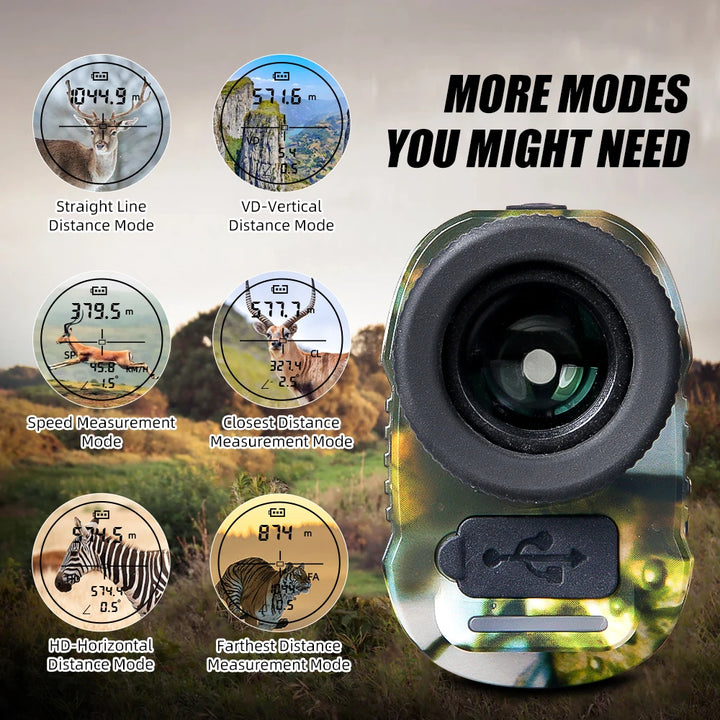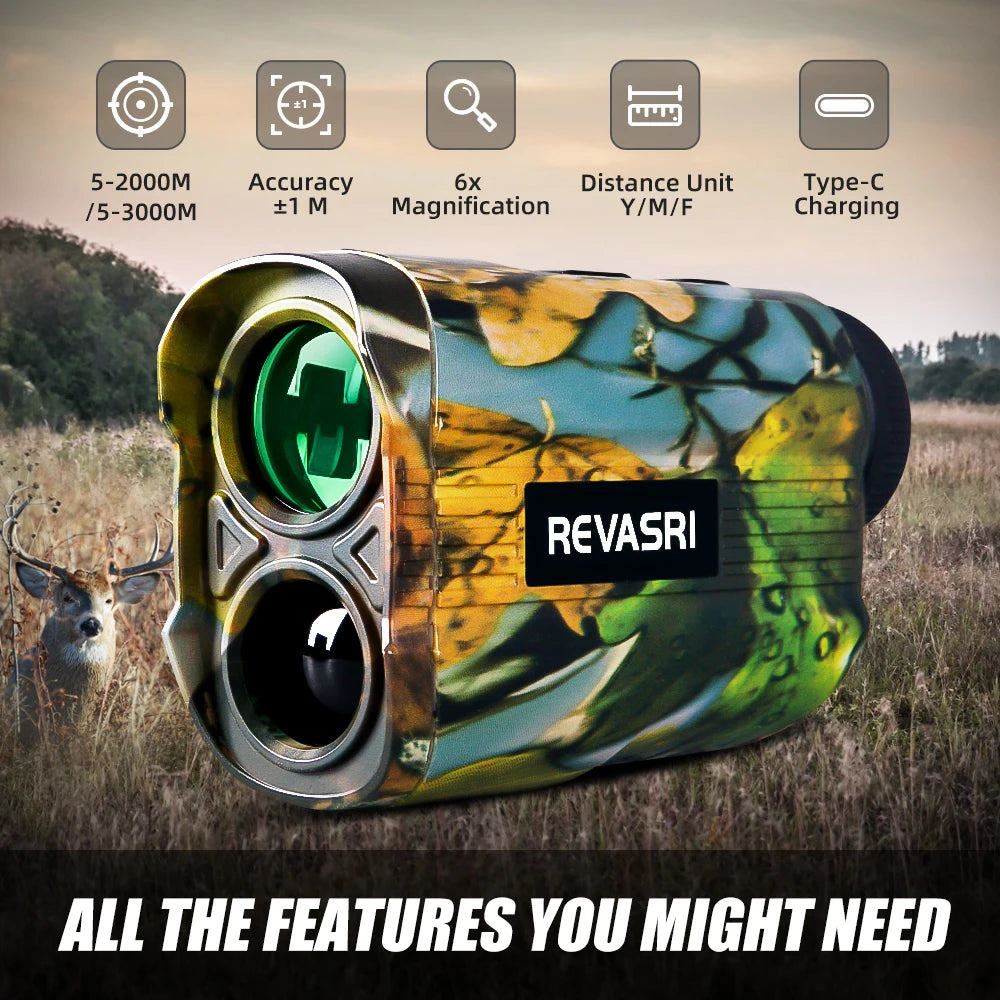 REVASRI Rechargeable Hunting Laser Rangefinder with Vertical/Horizontal/Speed/Scanning range finder Measurement for Hunting